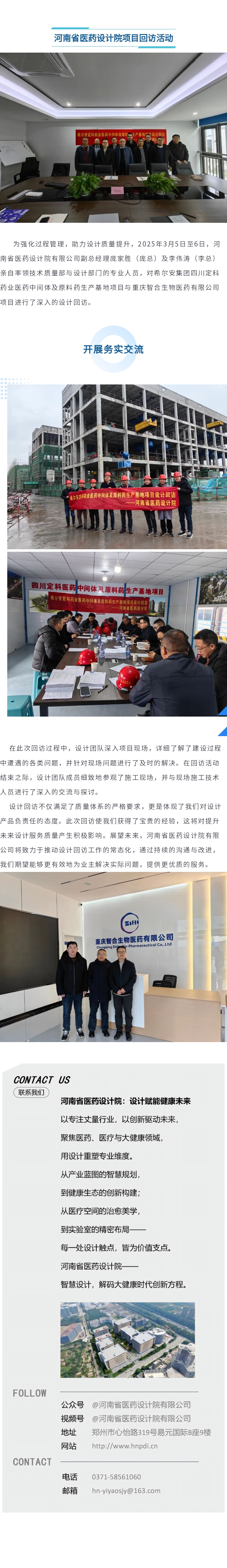 河南省医药设计院圆满完成希尔安集团四川定科药业原料药基地&重庆智合生物医药项目的设计回访服务